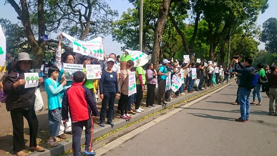 không chỉ có người dân Hà Nội nhiệt tình tham gia , các du khách người ngoài cũng nhiệt tình tham dự . Họ cũng hô vang khẩu hiệu cùng mọi người " WE LOVE TREE .WE LOVE FREEDOM "